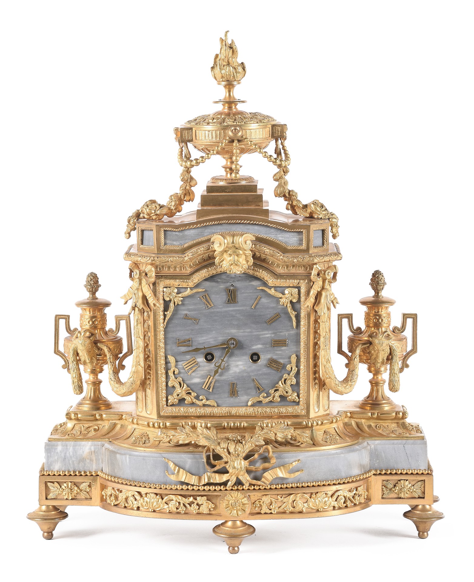 Reloj de sobremesa realizado en bronce dorado y mármol. Estilo Louis XVI. Época Napoleón III.