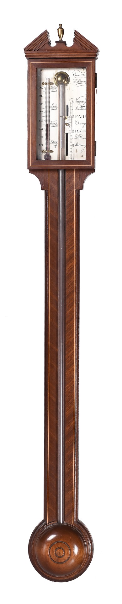 Barómetro de pared realizado en madera de caoba. Marca Comitti Holborn