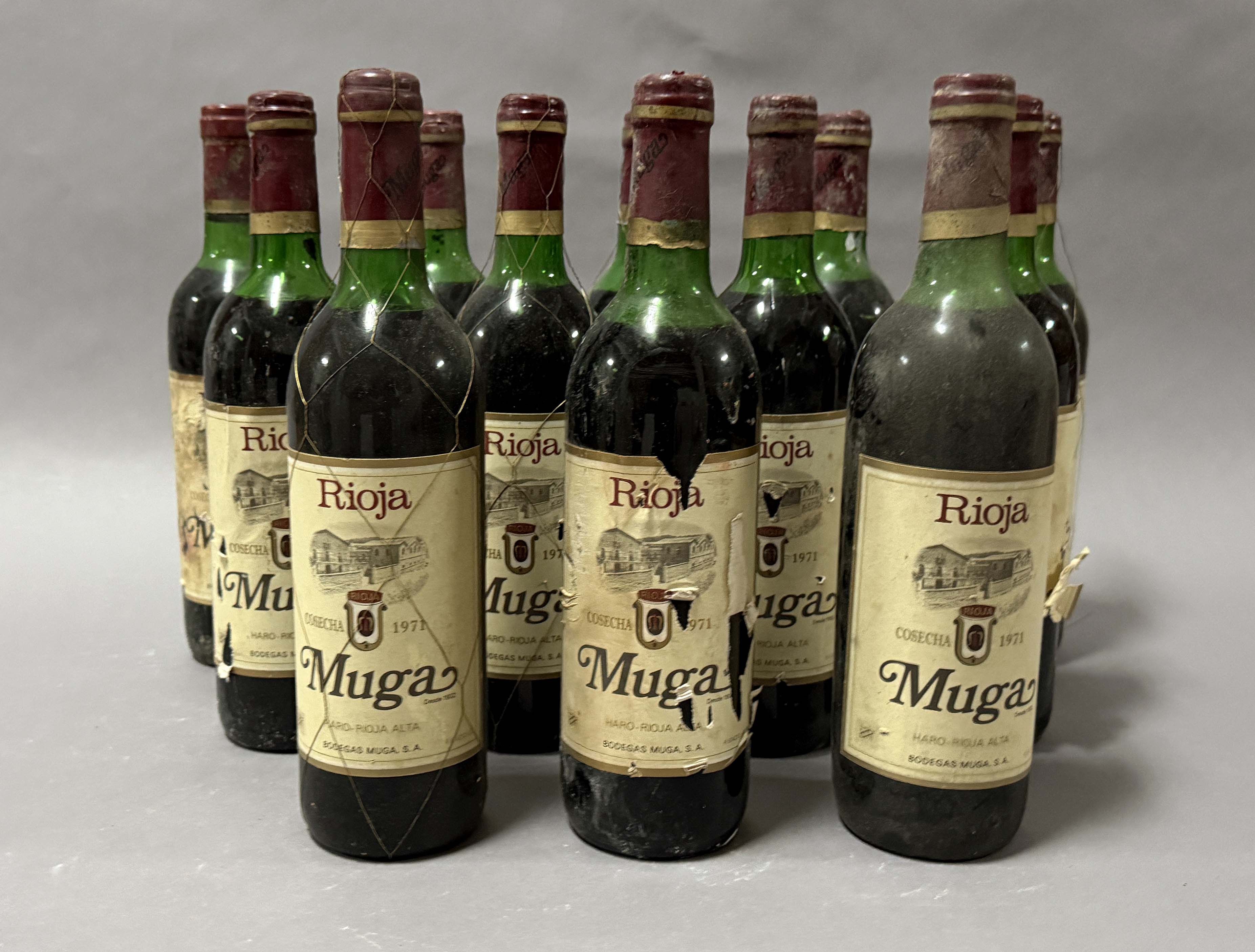 Lote compuesto por 12 botellas de vino Bodegas MUGA crianza de 1971. Haro La Rioja