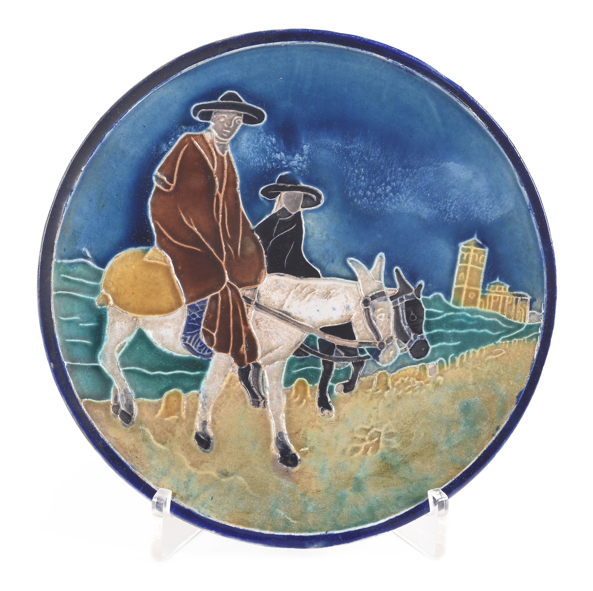DANIEL ZULOAGA(Madrid, 1852 – 1921)"Personajes con burro"Ceramica vidriada17 cm