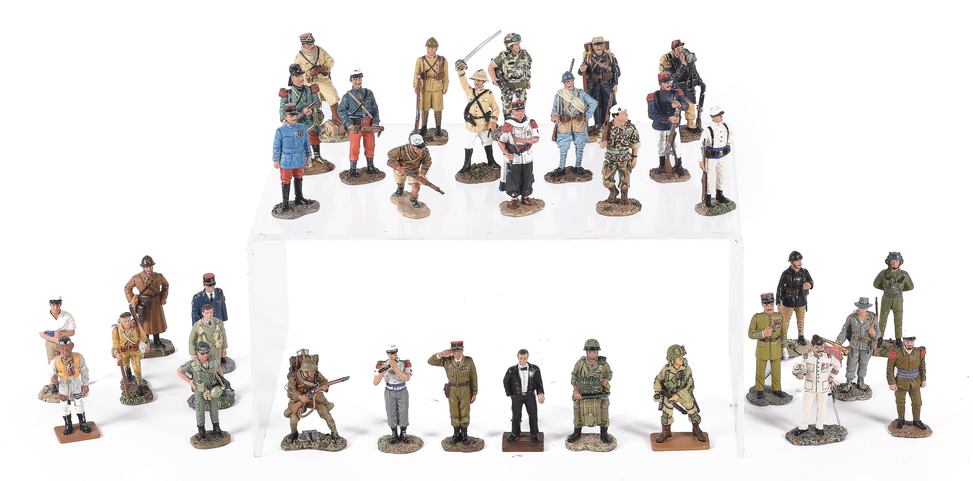 Lote compuesto por treinta y cuatro figuras de plomo policromado representando "Soldados".