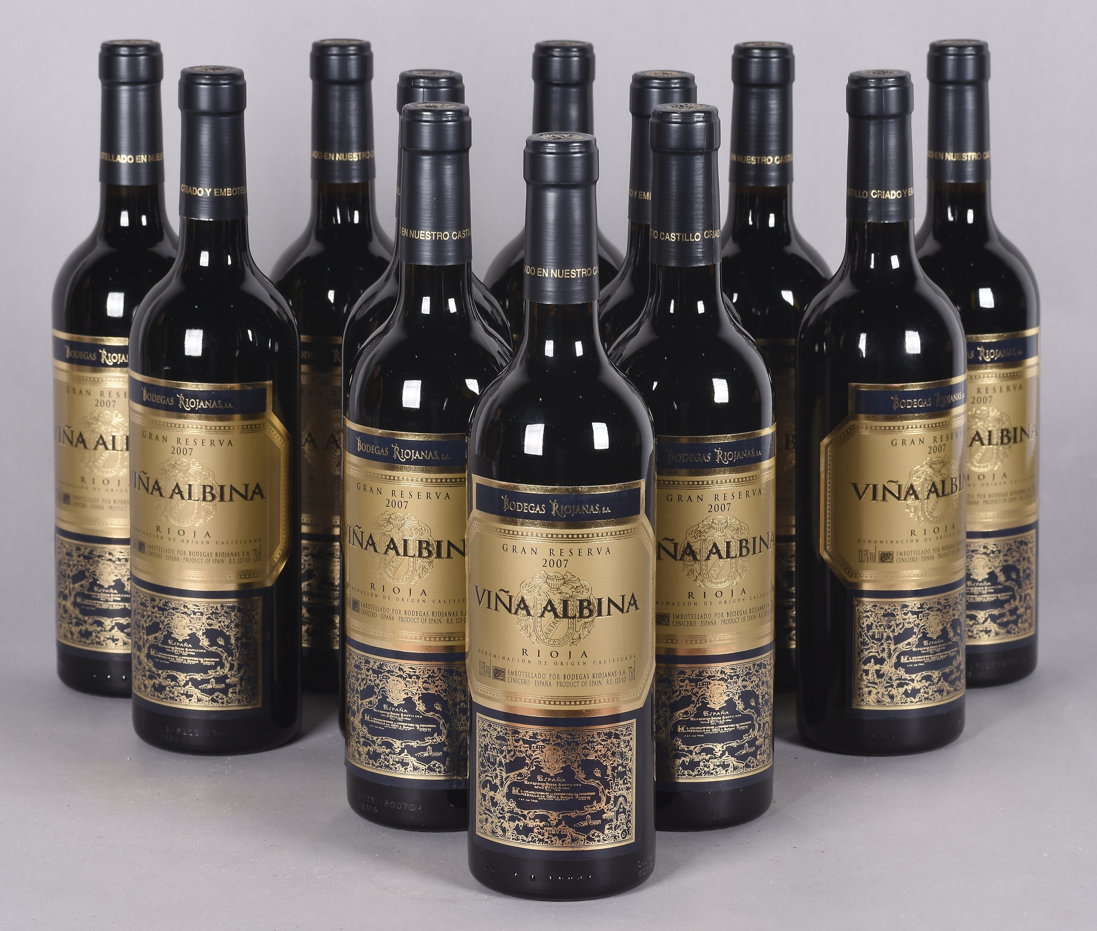 Lote compuesto por 12 botellas de vino de la Bodega BODEGAS RIOJANAS. VIÑA ALBINA Gran Reserva de 2017. Cenicero, La Rioja.