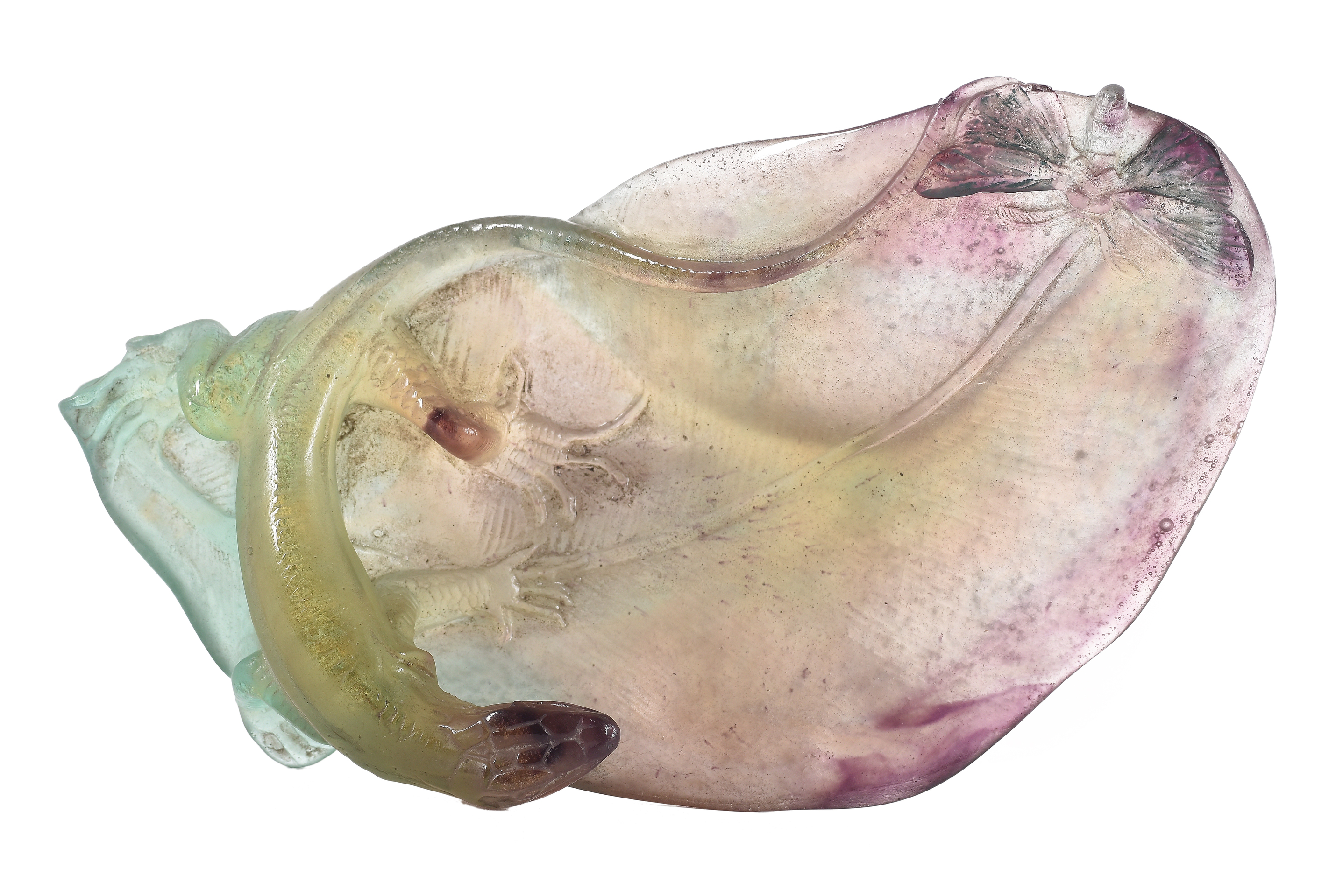 VÍCTOR AMALRIC WALTER(Sèvres, Francia, 1870-Lury sur Arnon, Francia, 1959)"Lagartija"Cristal policromado21 cm