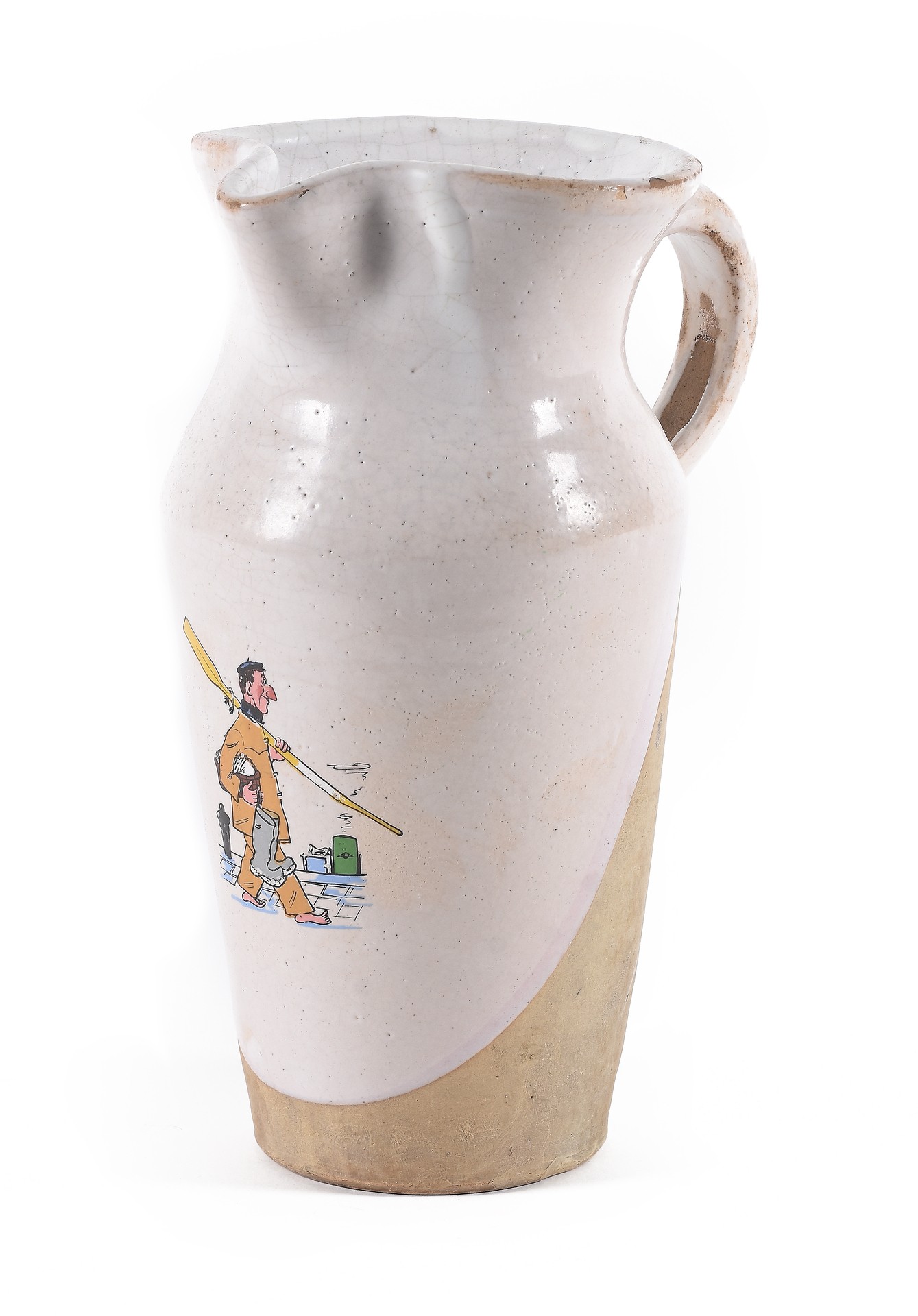 Jarra de txakoli realizada en cerámica vasca esmaltada representando "Arrantzal".