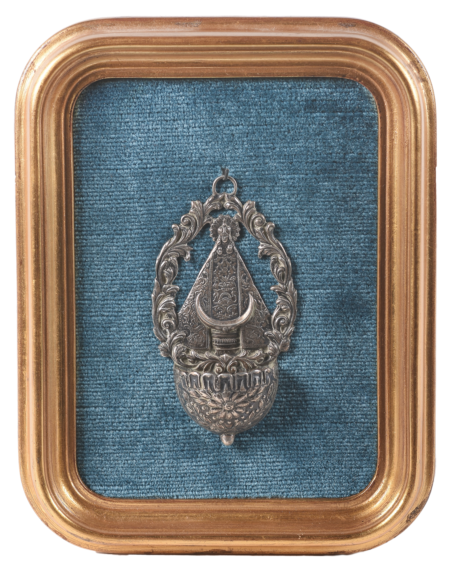 Agua benditera realizada en plata representando "Nuestra Señora de Begoña"