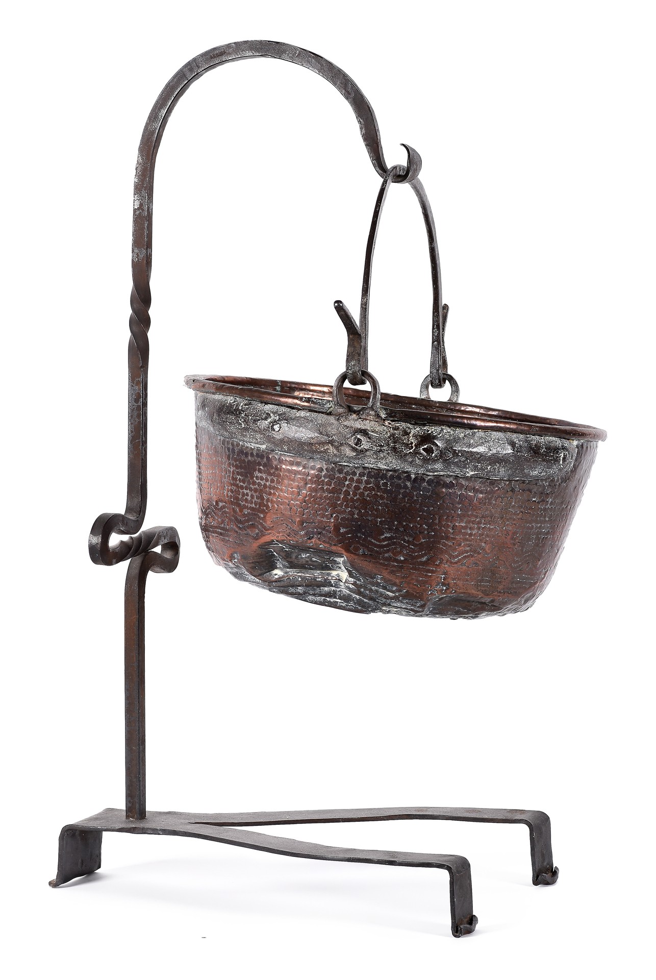 Caldero con soporte realizado en bronce y forja.