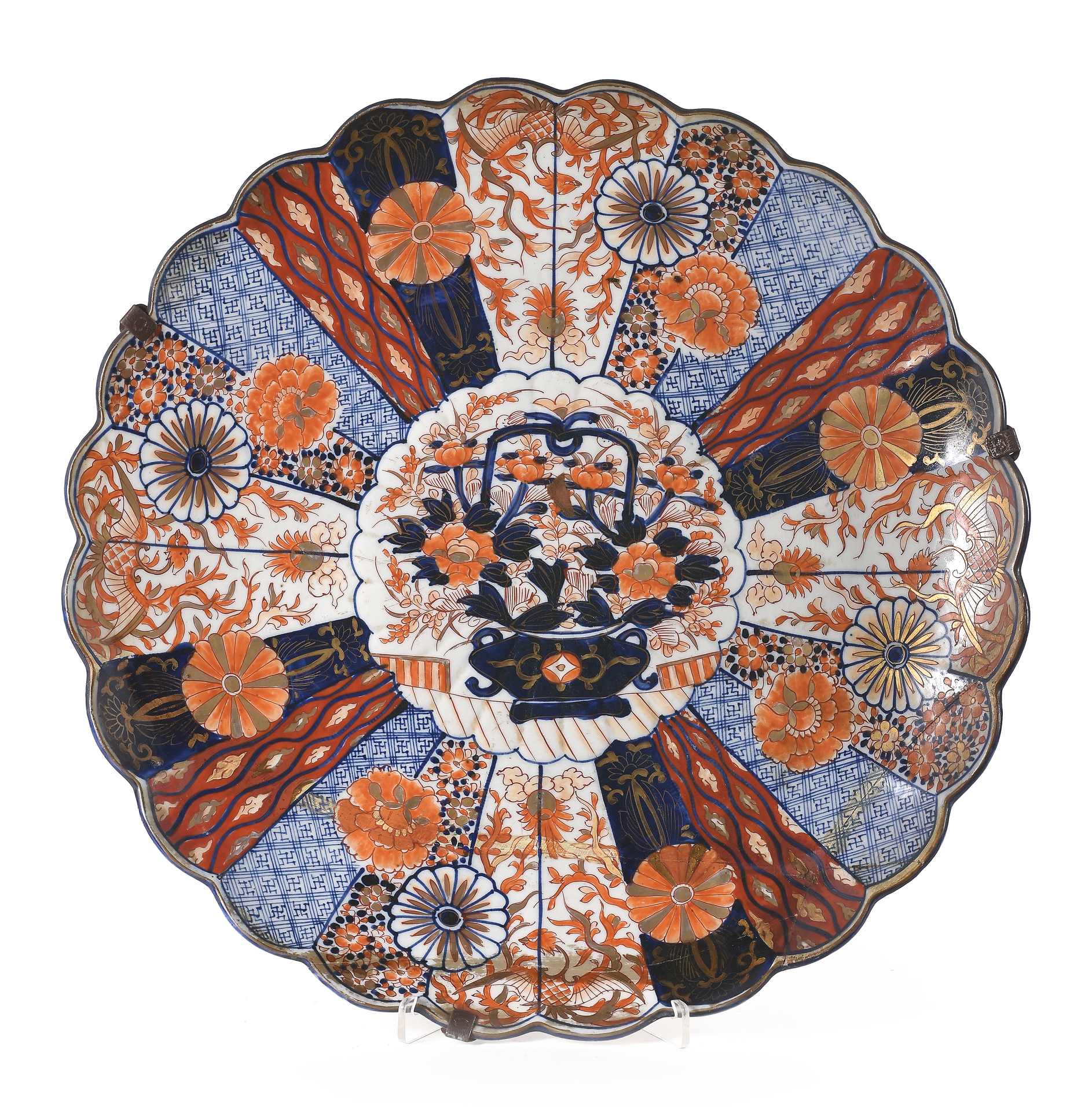 Plato realizado en realizado en porcelana de Imari con decoración vegetal y floral. Japón.