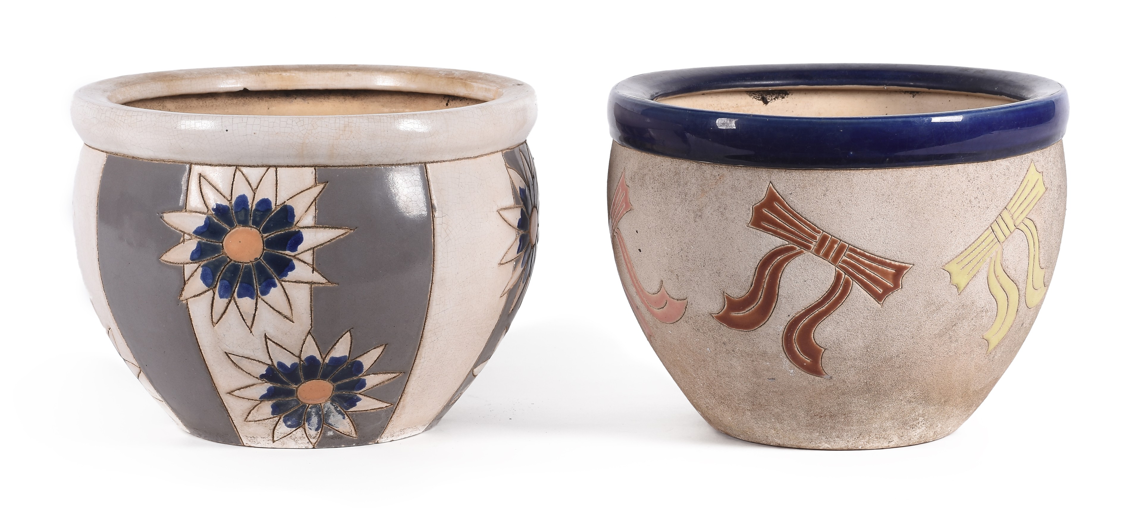 Lote compuesto por dos maceteros realizados en cerámica.