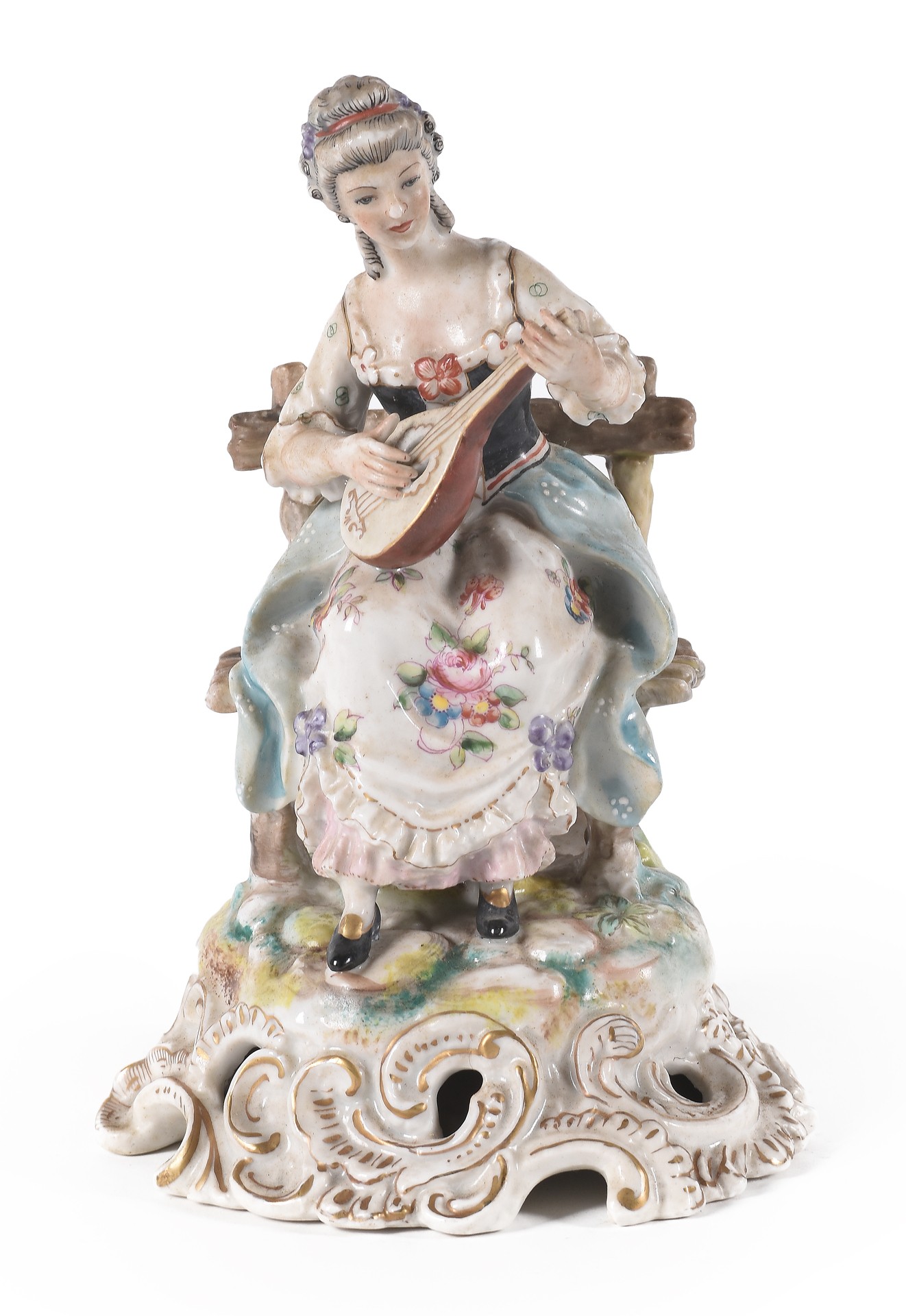 Figura realizada en porcelana representando "Dama con laud".
