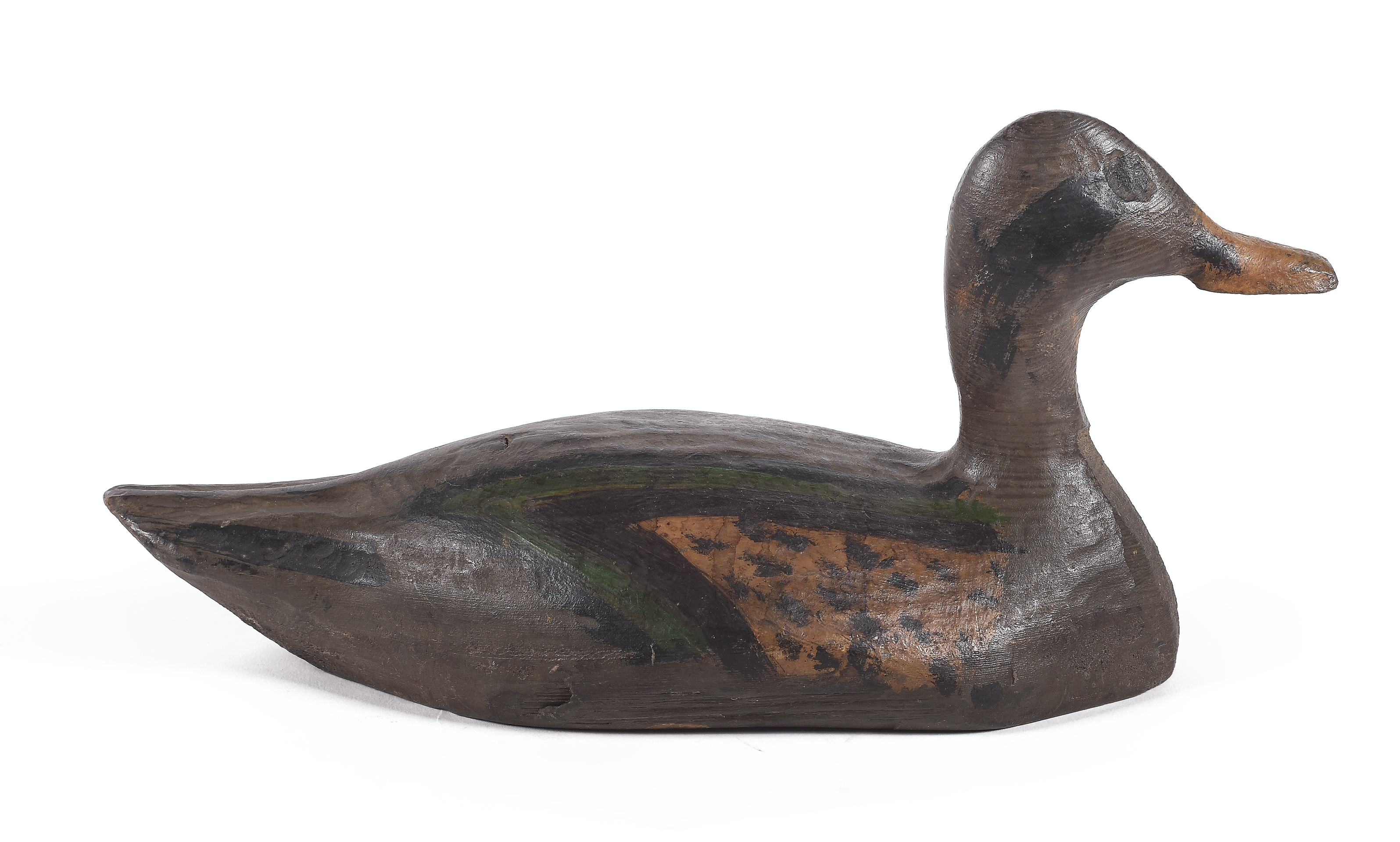 Reclamo realizado en madera policromada representando pato.