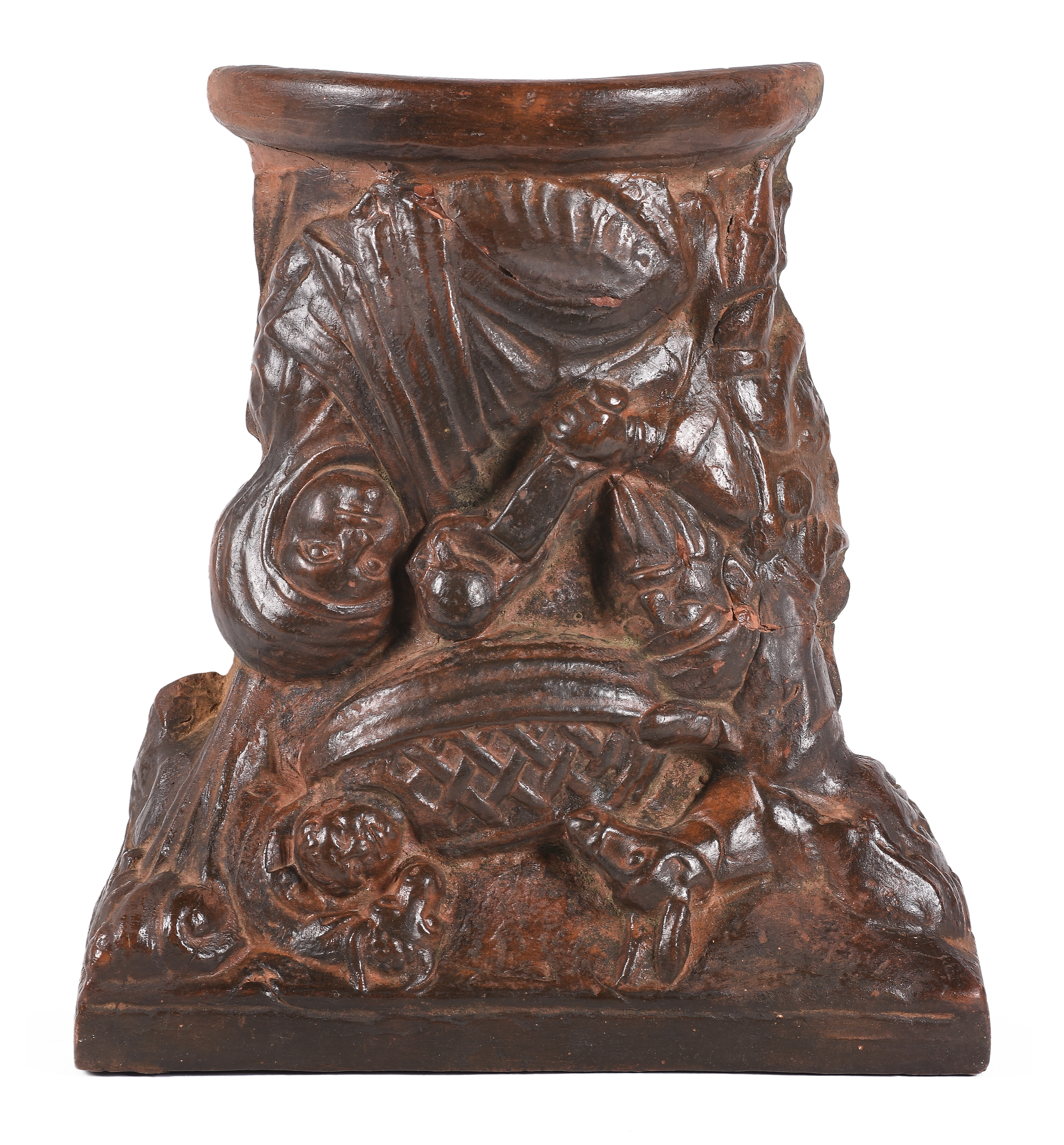 Relieve en forma de capitel románico realizado en terracota representando "Natividad"
