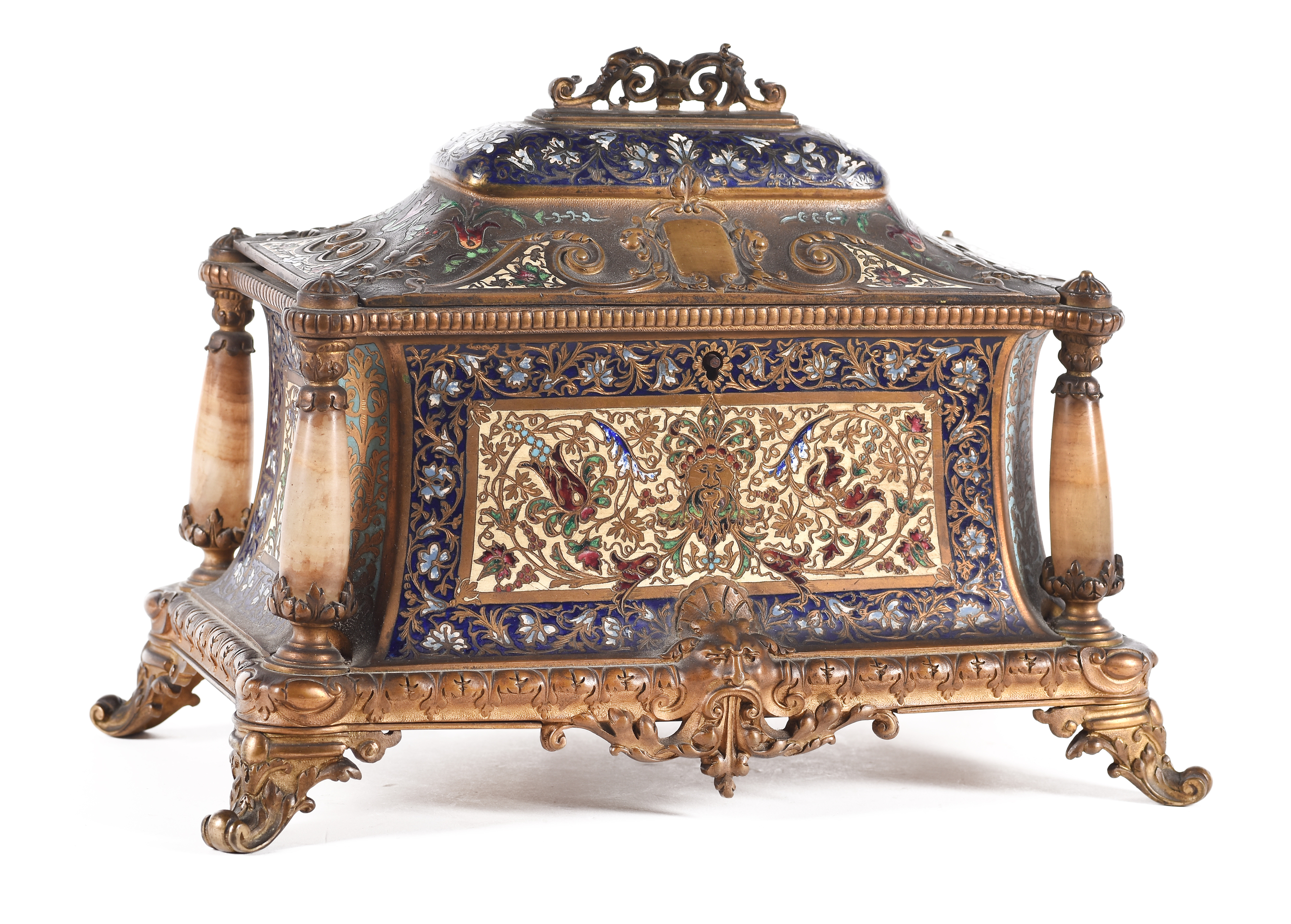 Cofre realizado en bronce y cloisonné. Francia.