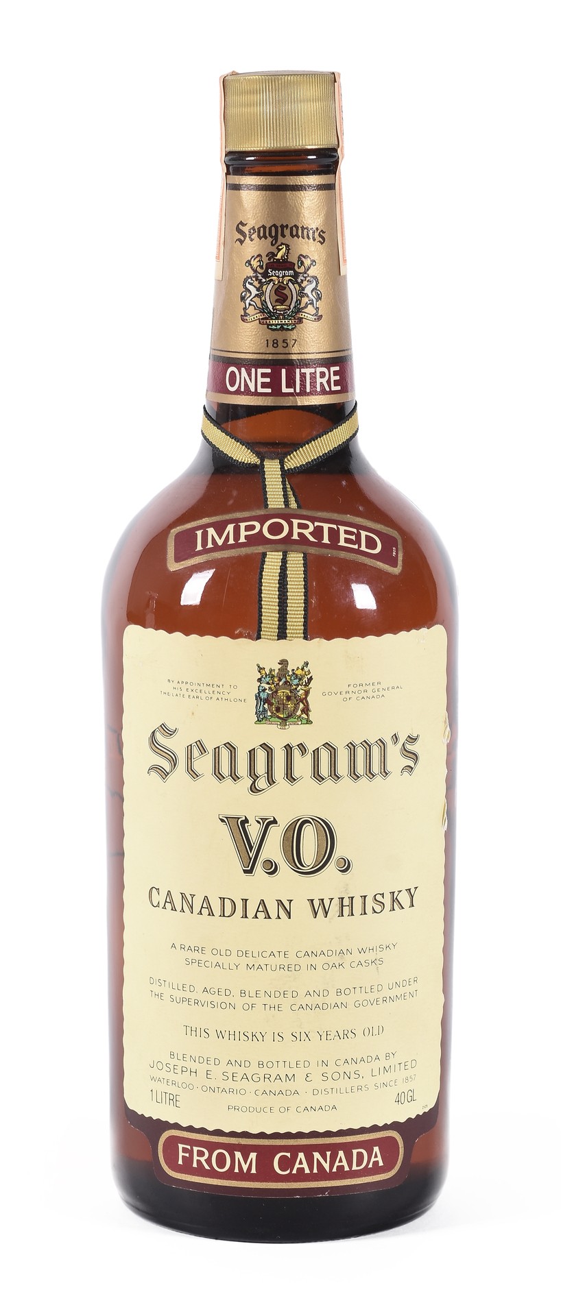Botella Seagram´s Canadian Whisky. V.O.