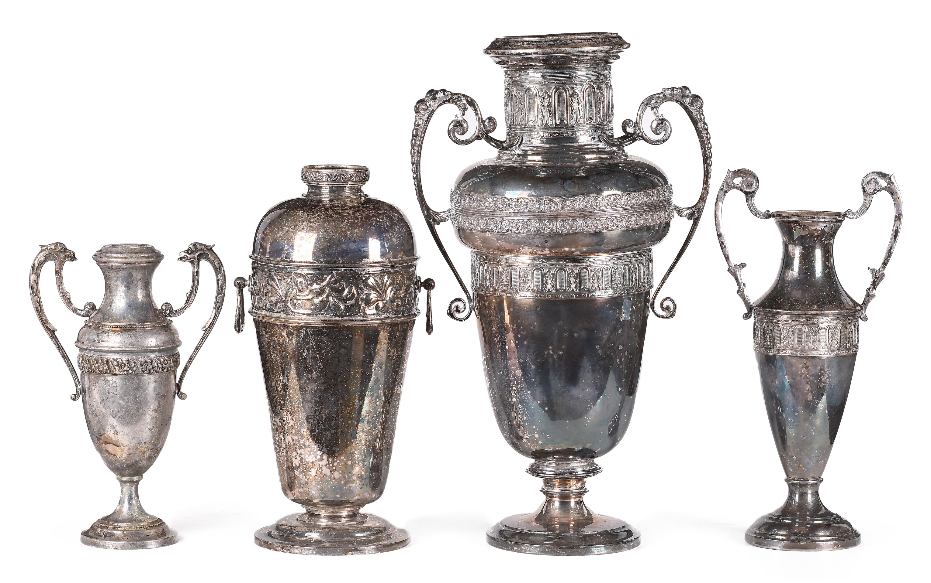 Lote compuesto por cuatro jarras realizadas en alpaca.