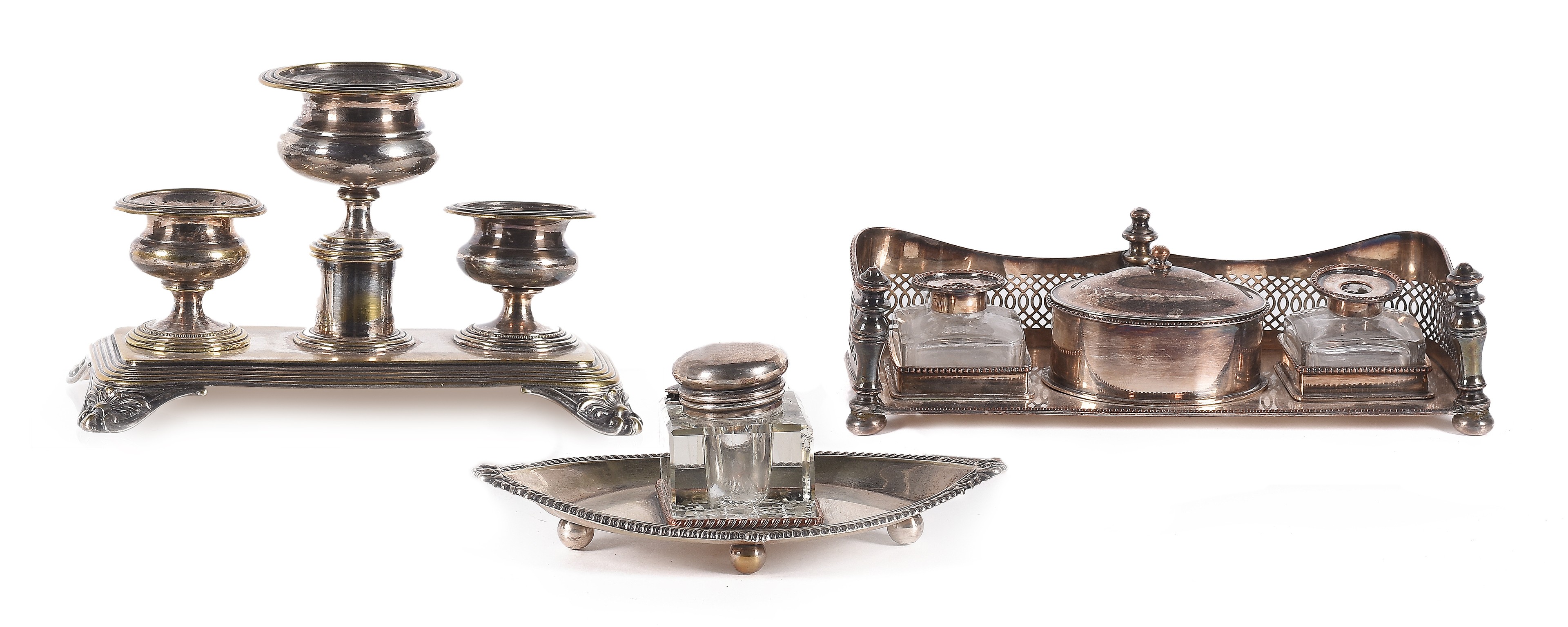 Lote compuesto por tres escribanas realizadas en metal plateado, una de ellas de la marca Christofle.