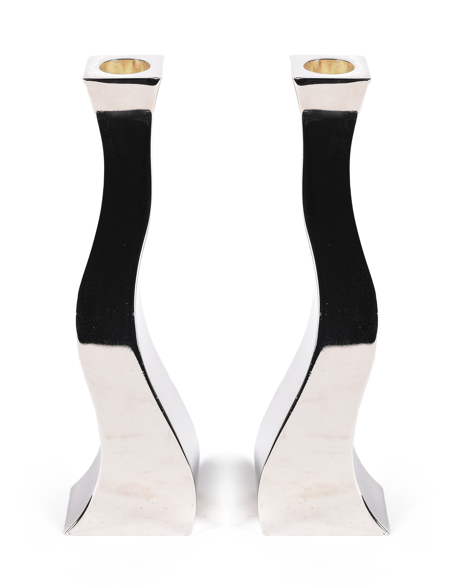 Pareja candelabros realizados en metal plateado del diseñador inglés Jasper Conran.