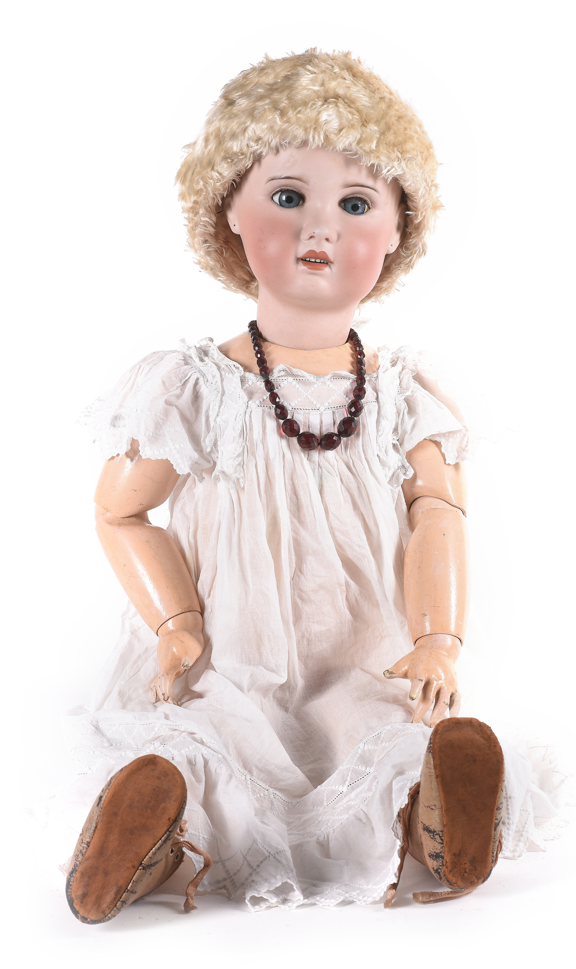 Muñeca articulada realizada en porcelana y papel maché. Marca SFBJ (Societé Française de Fabrication de Bébés et Jouets), modelo "21 R", Nº 15. París. Antiguas restauraciones en las manos.
