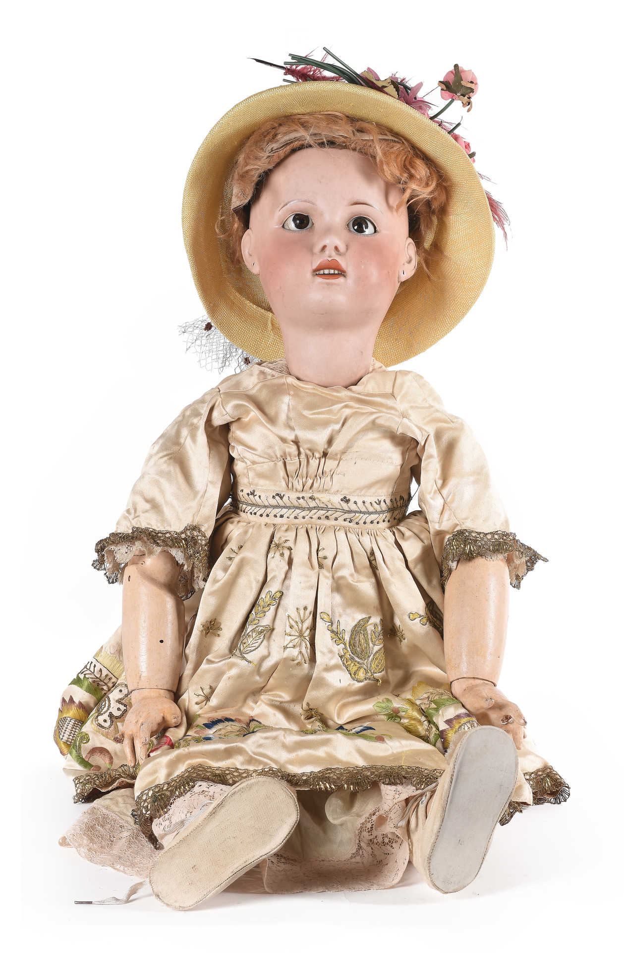 Muñeca articulada realizada en porcelana y papel maché. Marca SFBJ (Societé Française de Fabrication de Bébés et Jouets), modelo "R", Nº 11. París. Con faltas en los dedos.