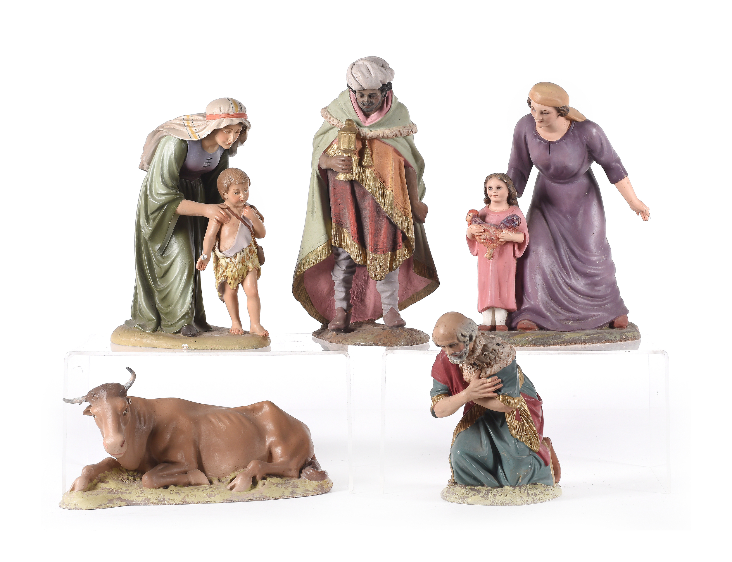 Lote compuesto por cinco personajes de un Belén realizadas en terracota.