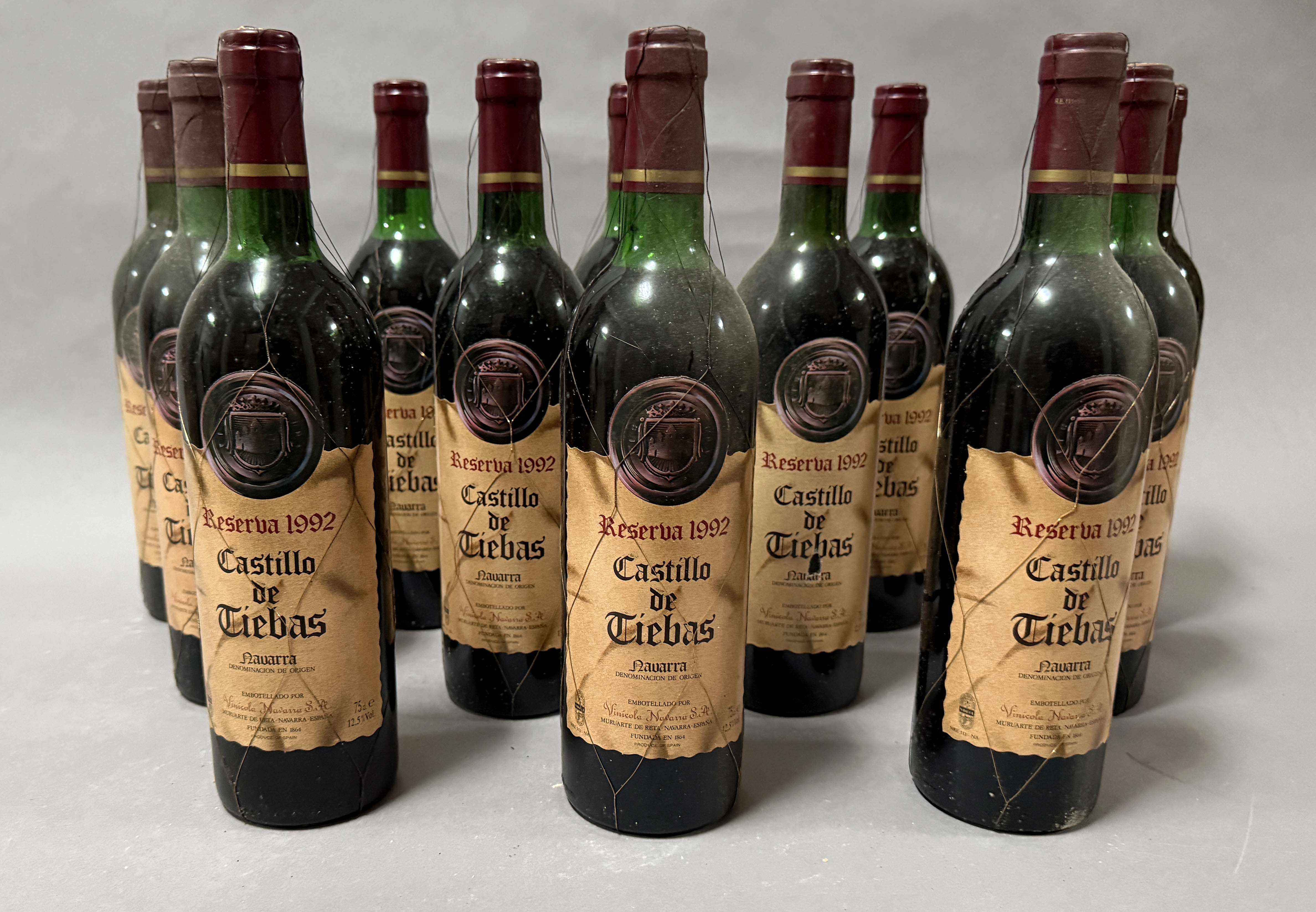 Lote compuesto por 12 botellas de vino tinto Bodegas Vinícola Navarra Castillo de Tiebas Reserva 1992. Muruarte de Reta Navarra