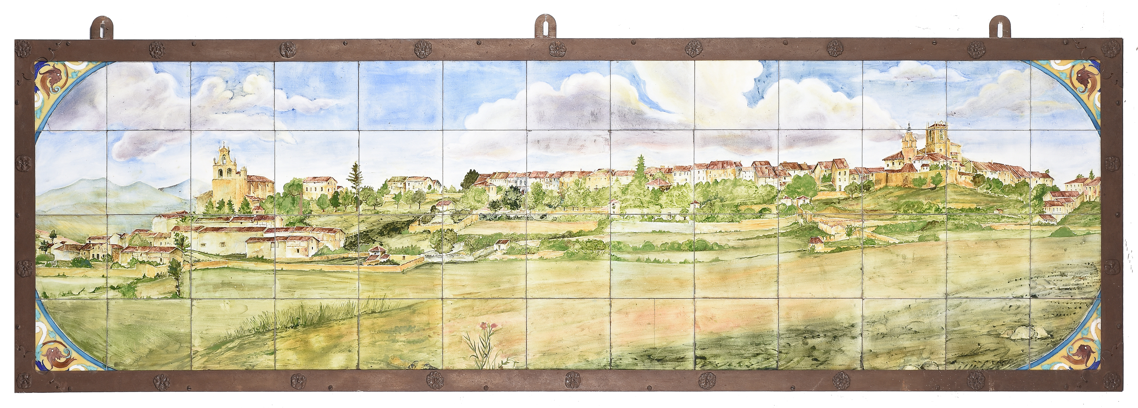 CERÁMICA ALAVESA(Agurain, Araba 1912)"Vista de Agurain"Cerámica esmaltada65 x 203 cm