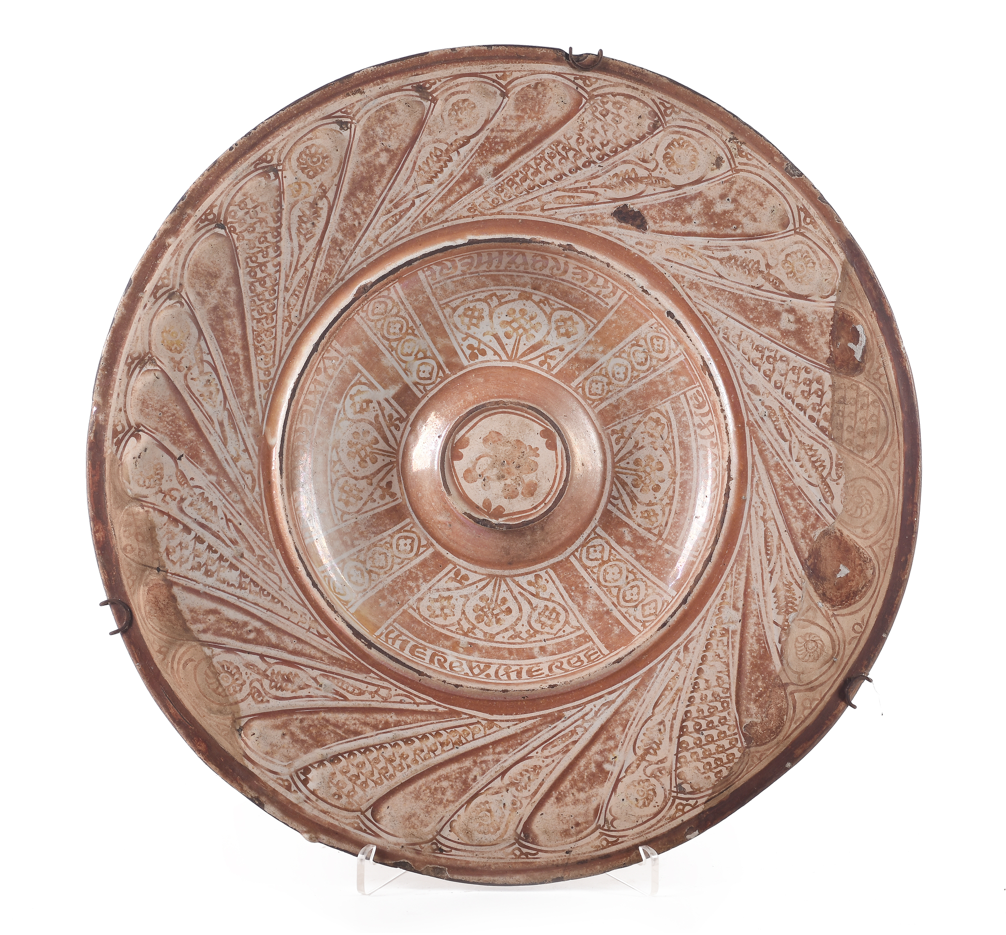 Plato realizado en cerámica esmaltada de reflejo. Manises, Valencia. Antigua restauración.