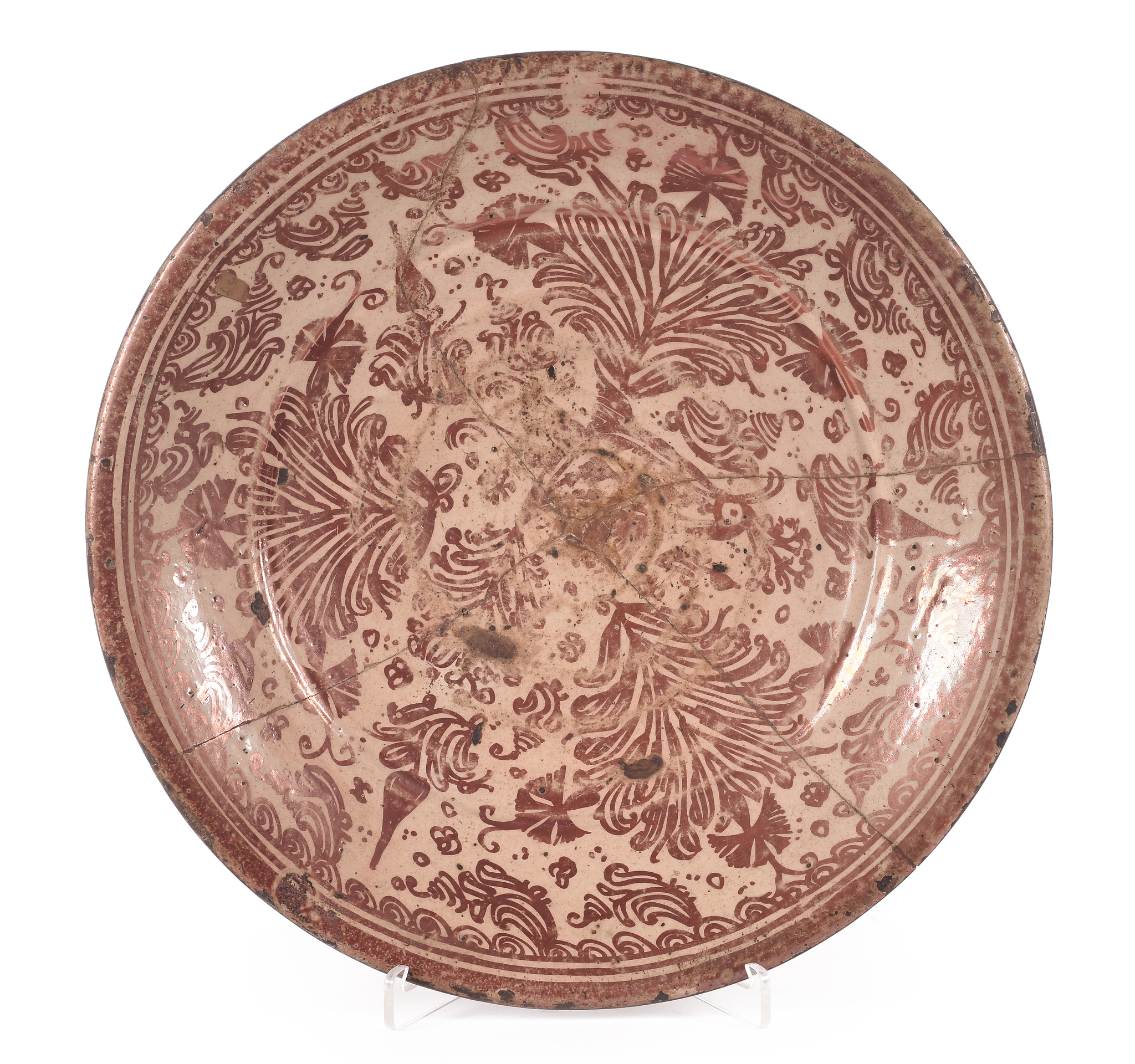 Plato realizado en cerámica esmaltada de reflejo. Manises, Valencia. Antigua restauración.