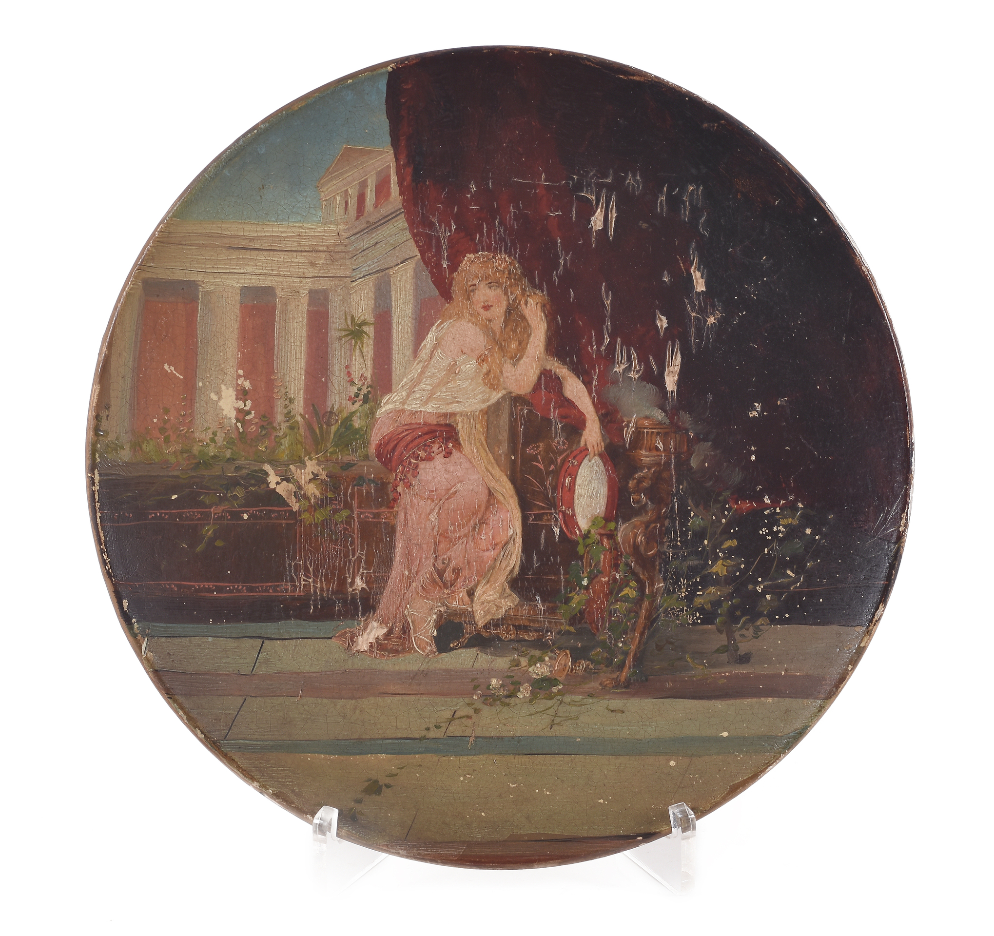 Plato realizado en cerámica policromada representando "Escena clásica".
