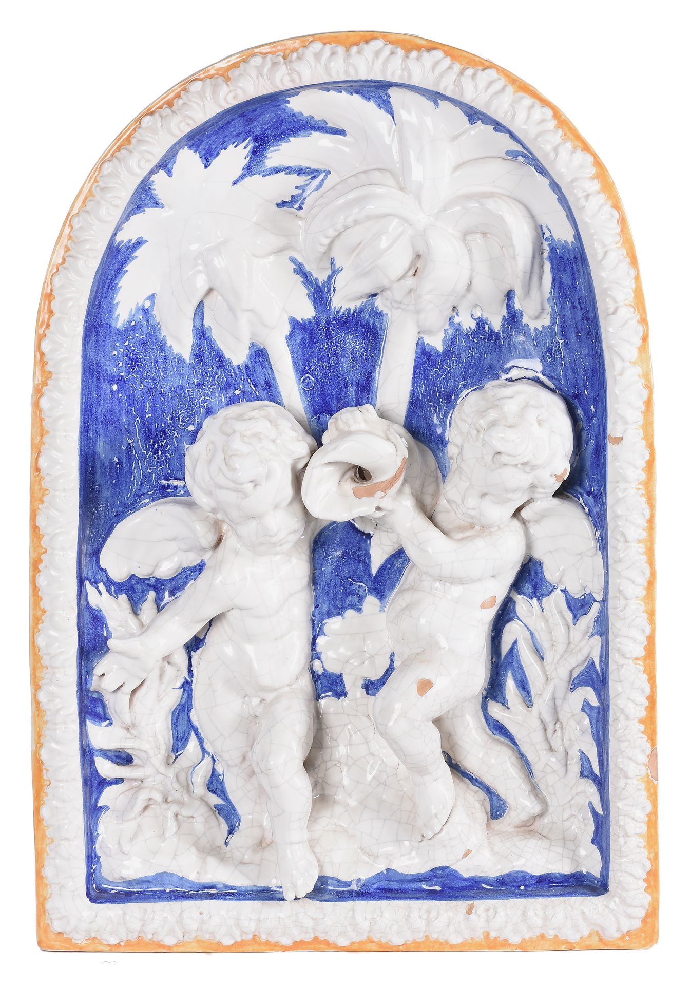 Relieve realizado en cerámica vidriada representando "Angelotes"