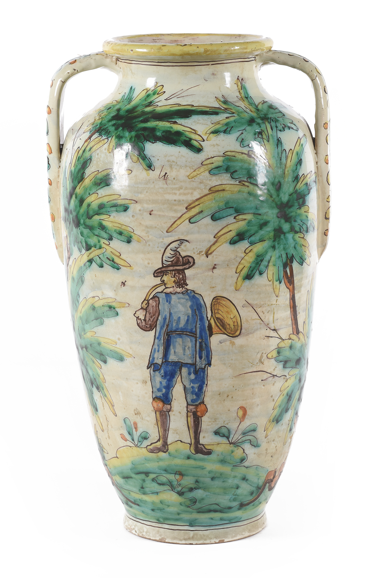 Jarrón realizado en cerámica de Talavera con motivos animales y vegetales.
