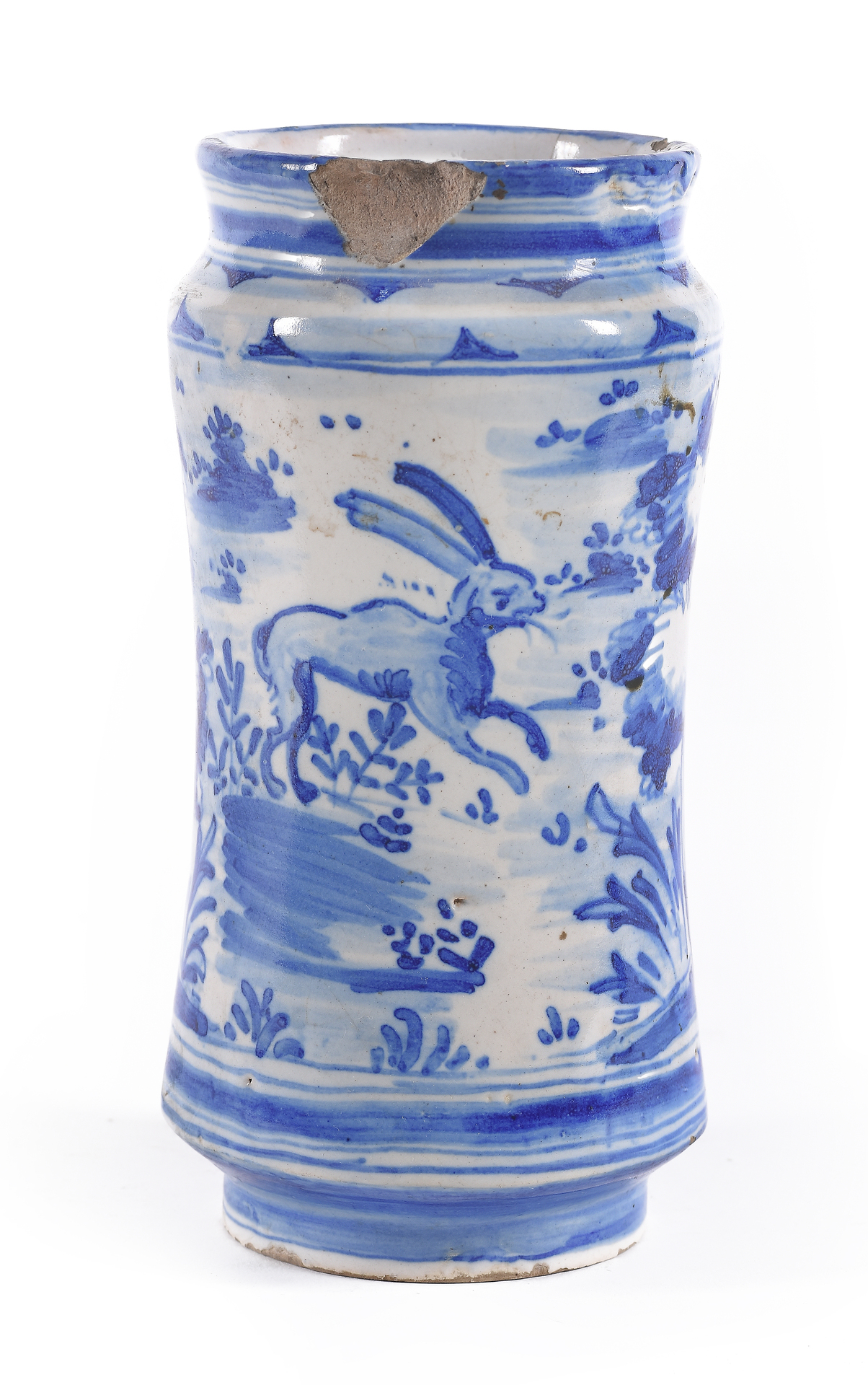 Albarelo realizado en cerámica de Talavera. Algunas faltas.