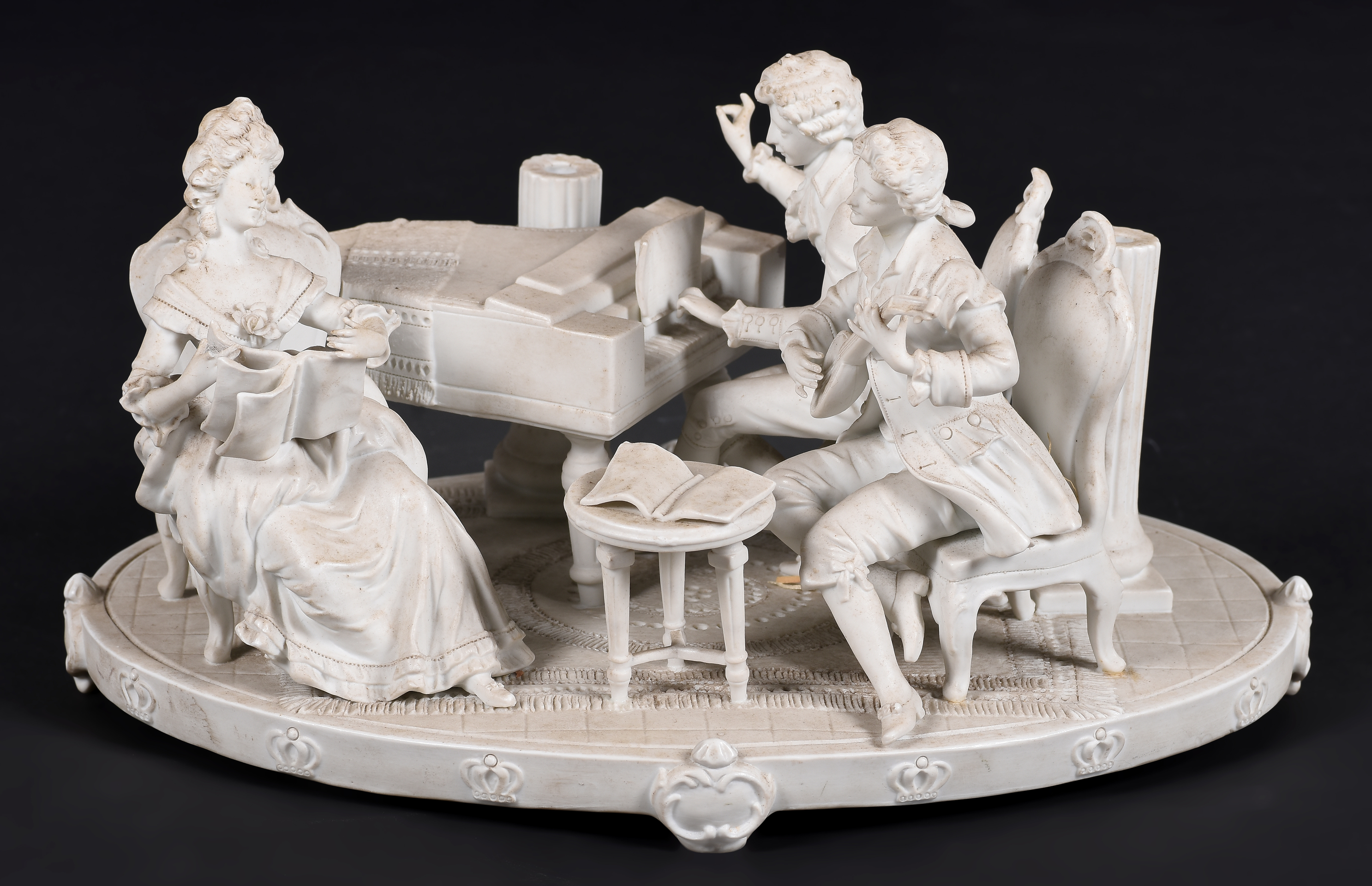 Figura realizada en biscuit representando "Escena galante con músicos".