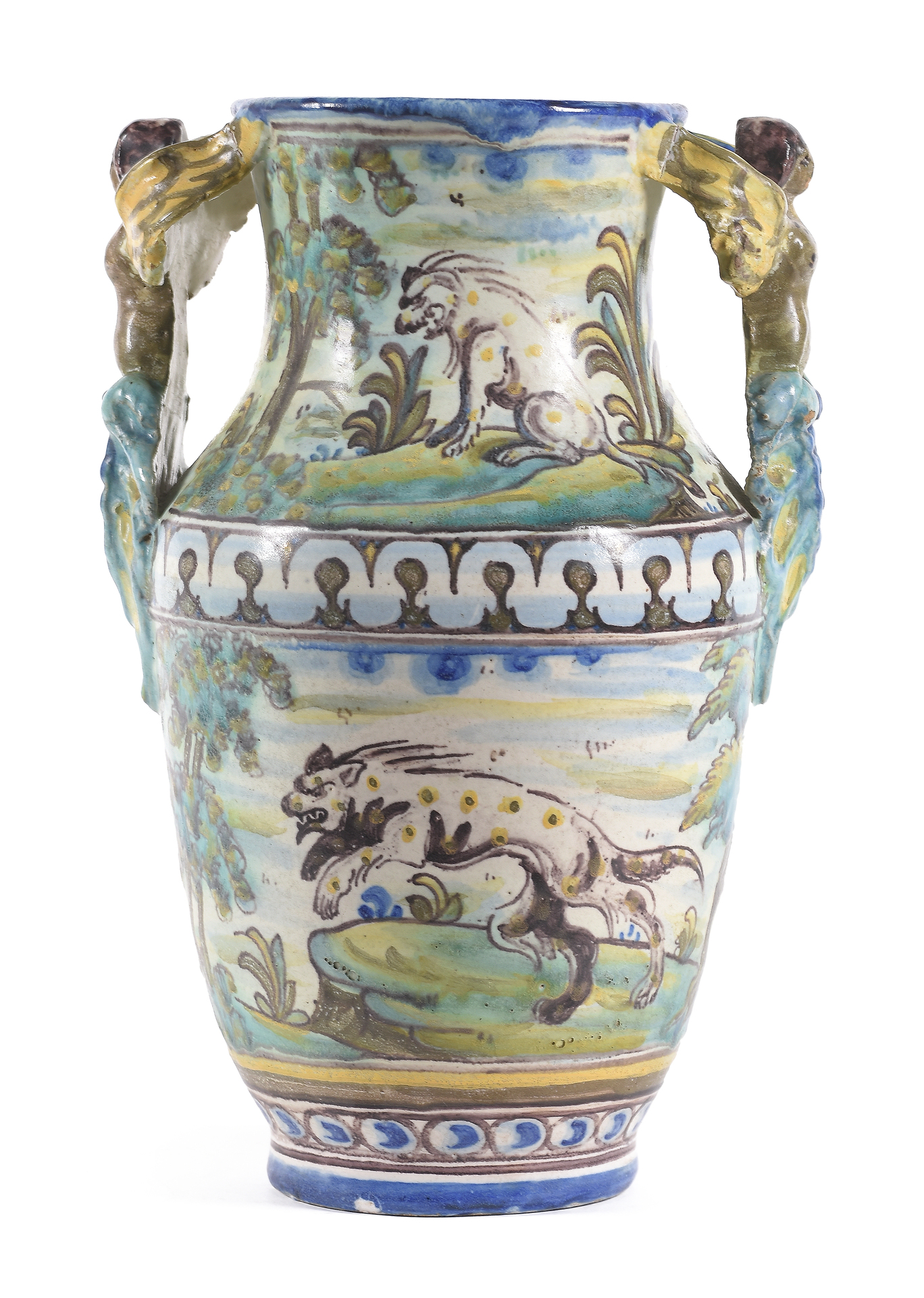 Jarrón realizado en cerámica de Talavera con decoración animal y vegetal.
