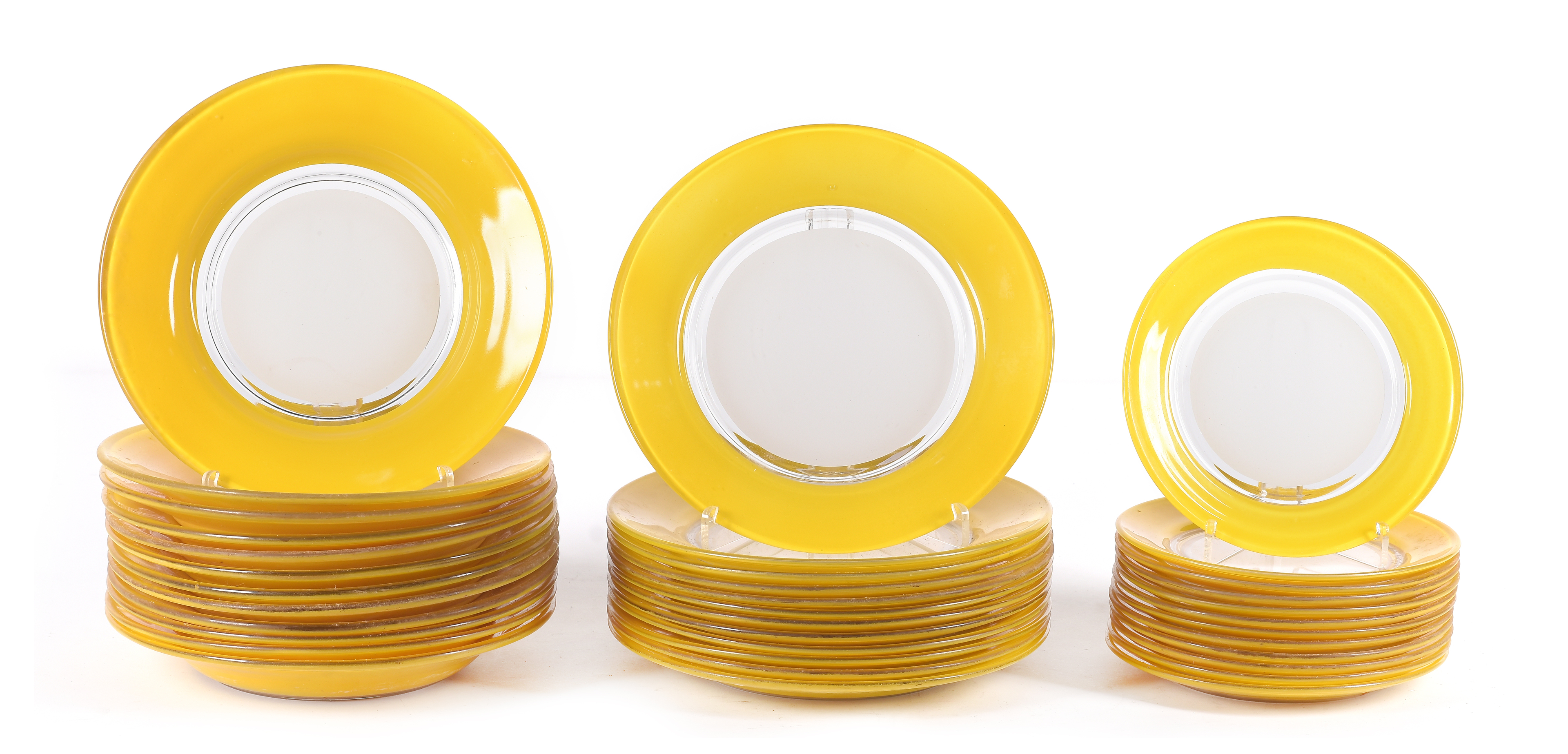 Vajilla realizada en cristal blanco y amarillo.