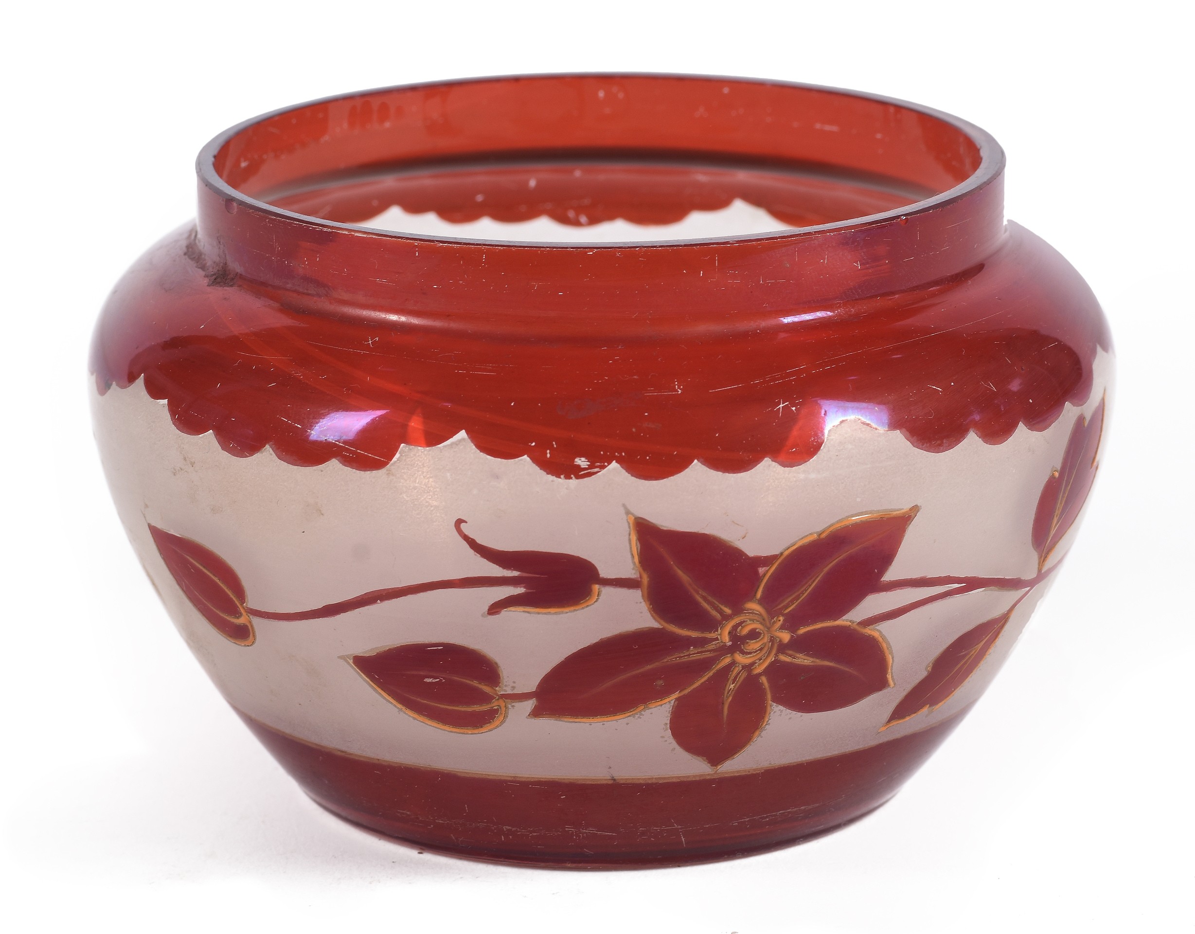 Vasija realizada en cristal decorado con motivos florales. Francia.
