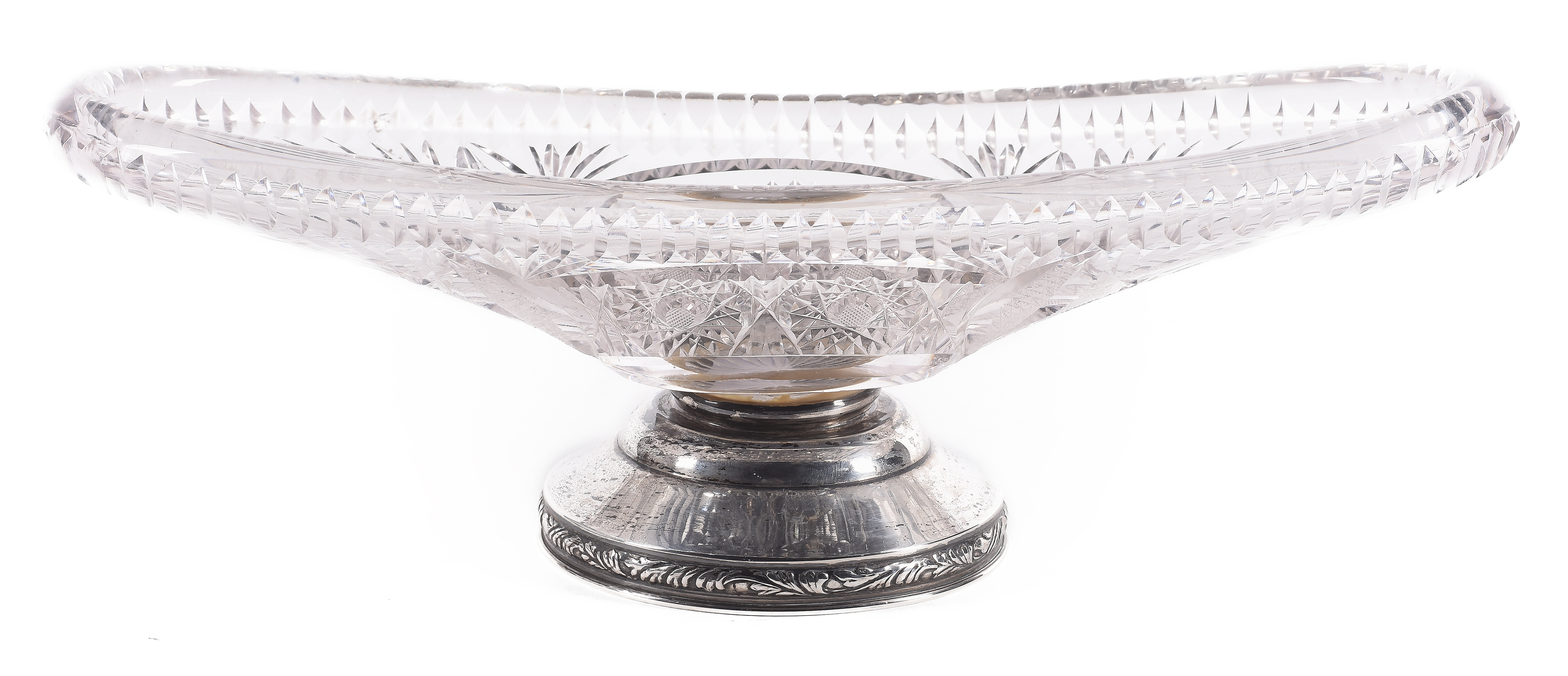 Centro de mesa realizado en cristal tallado checo y con base de plata.