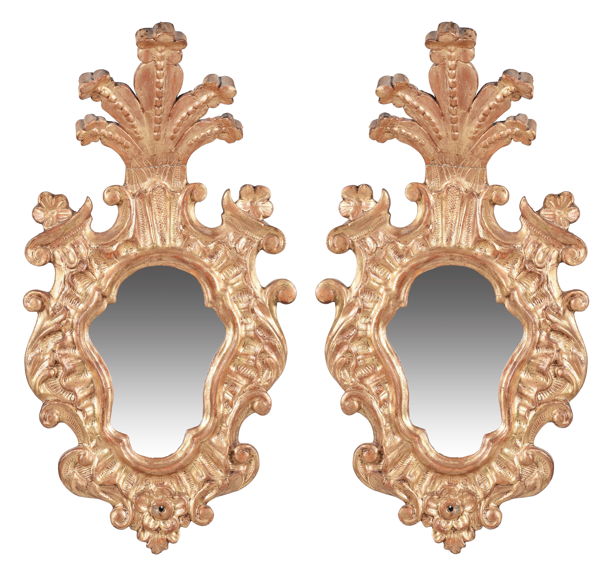 Pareja de cornucopias realizadas en madera tallada y dorada. España.
