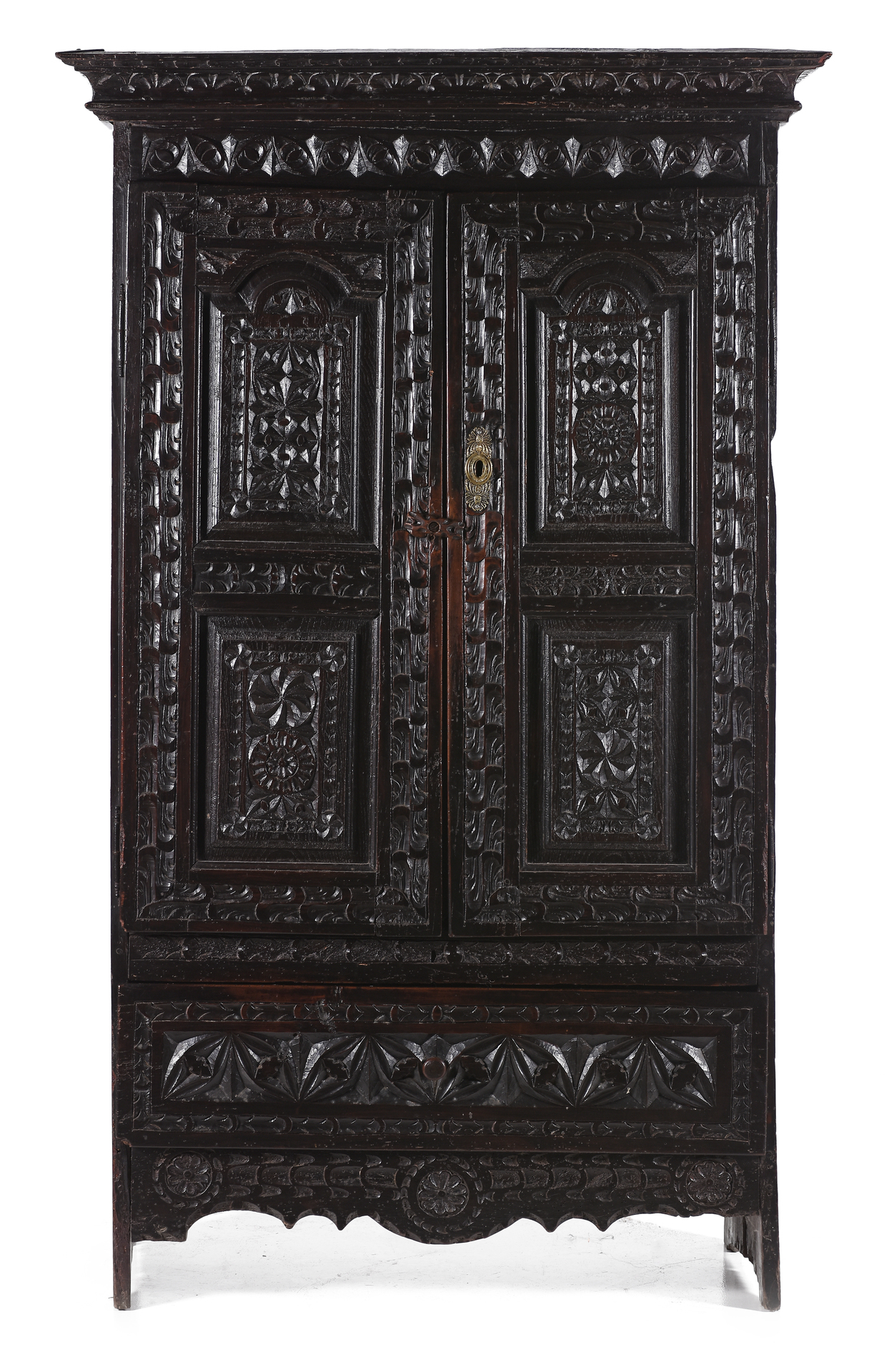Armario vasco realizado en madera de castaño tallado con motivos vegetales.