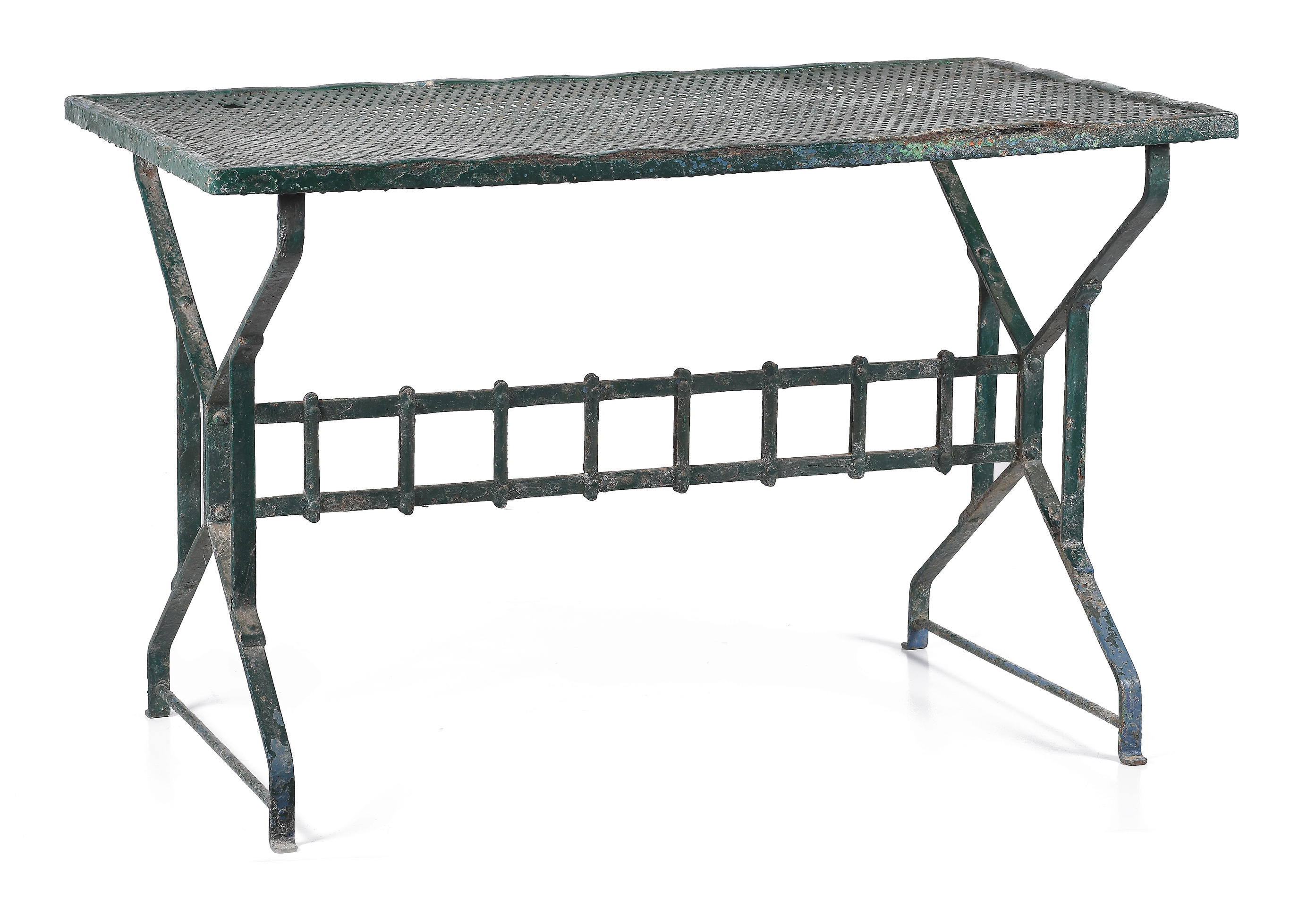 Mesa de exterior realizada en hierro forjado y lacada en verde.