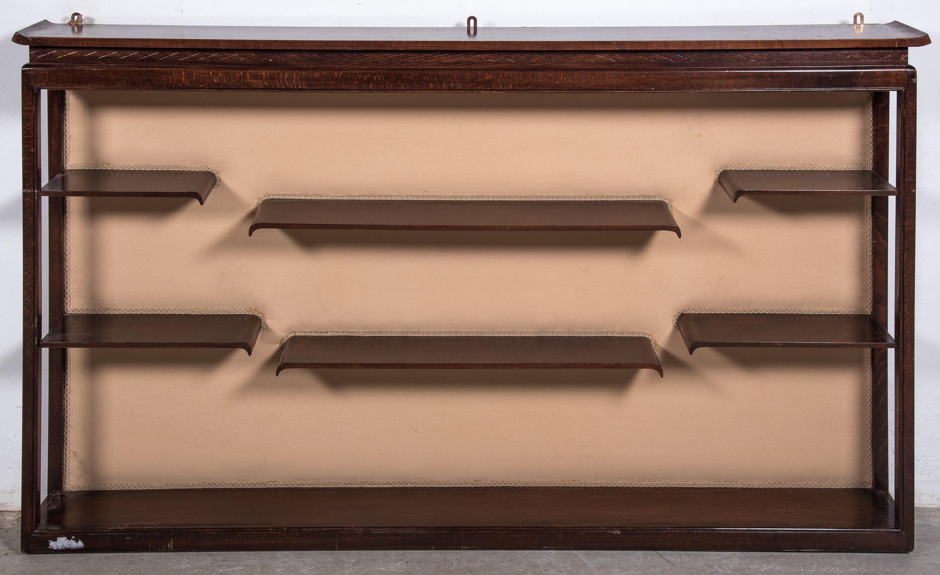 Mueble estantería-expositora realizada en madera de caoba.